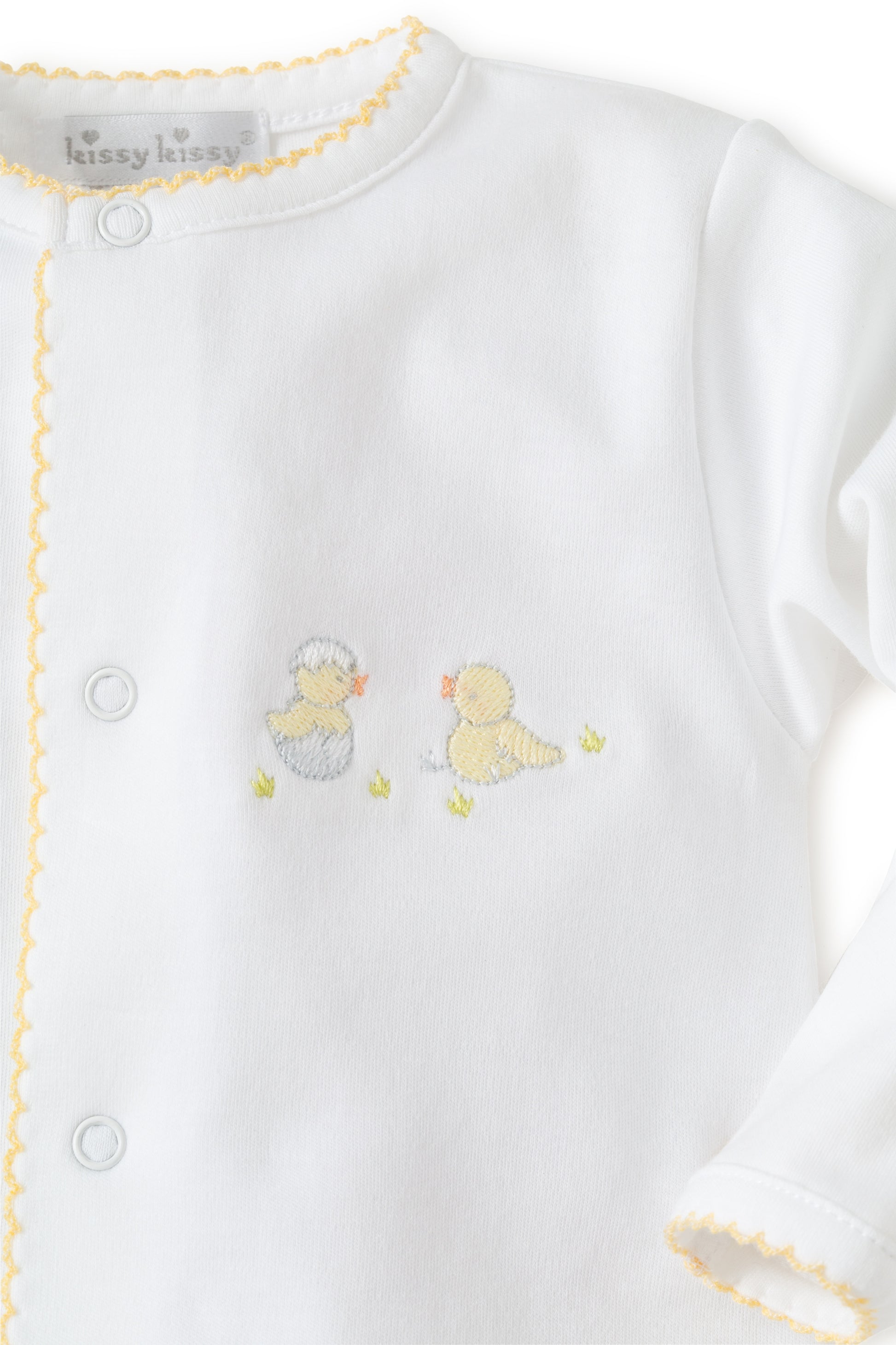 - Snaps from neckline to feet